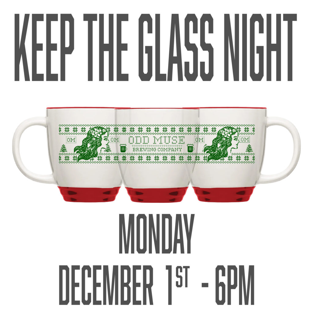 ** Monday December 1st @ 6pm ** The first Monday of the month is ‘Keep the Glass Night’ at ODD Muse!! Buy the beer, keep the glass. Each month we feature a different glass and different beer. This month we’re […]